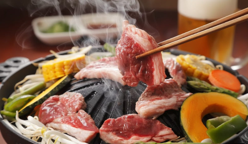 ถึงแม้เมนูเจงกิสข่านจะเป็นเมนูอาหารท้องถิ่นของฮอกไกโดโดยรวม แต่ก็เป็นเมนูยอดนิยมในอาซาฮิคาวะเช่นกัน โดยส่วนประกอบของเมนูนี้คือเนื้อแกะที่นำมาหมักกับซอสสูตรเฉพาะ จากนั้นนำมาย่างบนเตาเหล็กหล่อรูปทรงหมวกที่ตรงกลางนูนคล้ายภูเขา การย่างบนเตาพิเศษนี้ช่วยให้น้ำมันจากเนื้อแกะไหลลงสู่ขอบเตา ซึ่งจะใช้ย่างผักต่าง ๆ ทำให้ผักดูดซับความหอมอร่อยของน้ำจากเนื้อแกะ เป็นอาหารที่อร่อยและรับประทานกันเป็นกลุ่ม