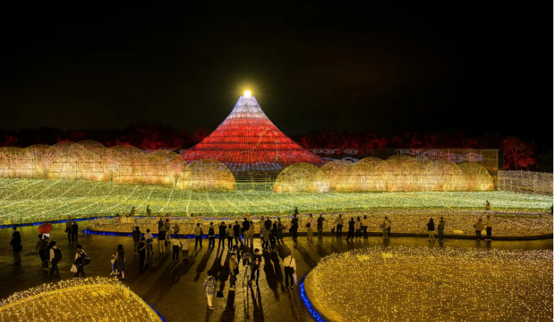6. สวนดอกไม้นาบานะ โนะ ซาโตะ (Nabana no Sato) กับดอกไม้หลากชนิด และความงามของการประดับไฟ