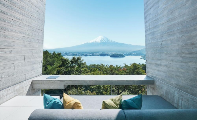 Hoshinoya Fuji เป็นโรงแรมที่มอบประสบการณ์การพักผ่อนในรูปแบบการตั้งแคมป์ที่หรูหราและใกล้ชิดธรรมชาติที่สุดแห่งหนึ่งในญี่ปุ่น โดยผู้เข้าพักจะได้รับความเป็นส่วนตัวและความเงียบสงบเป็ยอย่างดี เนื่องจากที่พักถูกออกแบบให้เป็นห้องคอนกรีตสไตล์มินิมอลรูปทรงกล่องที่หันหน้าเข้าหาภูเขาไฟฟูจิทุกห้อง ทำให้คุณสามารถเห็นยอดเขาที่สวยที่สุดได้จากภายในห้องนอนหรือระเบียงส่วนตัวได้ นอกจากนี้ คุณจะได้สัมผัสกับระเบียงเมฆ (Cloud Terrace) ที่เป็นพื้นที่ส่วนกลางท่ามกลางป่าสนที่ออกแบบเป็นขั้นบันได ซึ่งมีกิจกรรมพิเศษให้ทำตลอดทั้งวัน ไม่ว่าจะเป็นการพายเรือในทะเลสาบคาวากุจิโกะยามเช้าที่แสนสงบ หรือการเดินป่าพร้อมไกด์ผู้เชี่ยวชาญ