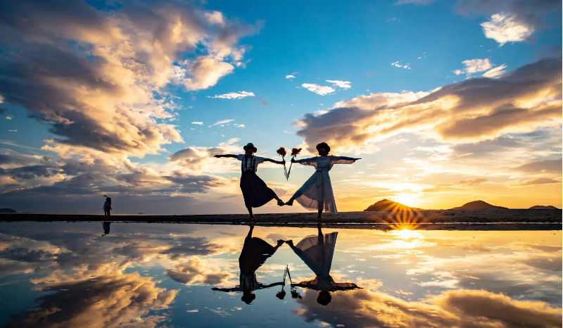ชายหาดโออาไร ซัน บีช เป็นชายหาดสำหรับเล่นน้ำที่มีชื่อเสียงในจังหวัดอิบารากิ โดดเด่นด้วยหาดทรายที่กว้างใหญ่และมีระดับน้ำตื้น เนื่องจากเป็นหาดน้ำตื้นที่มีขนาดกว้างใหญ่ ในช่วงที่น้ำลง ผืนน้ำที่ขังอยู่บนหาดจะนิ่งและใส ทำให้เกิดปรากฏการณ์ภาพสะท้อนของท้องฟ้าและทิวทัศน์โดยรอบได้อย่างสวยงาม ทำให้สามารถลงไปยืนถ่ายภาพในน้ำได้โดยที่เสื้อผ้าไม่เปียกมากนัก สิ่งนี้จึงถือเป็นโอกาสที่ดีในการถ่ายภาพแนวศิลปะที่เห็นเงาสะท้อนของตัวเองบนผิวน้ำได้อย่างง่ายดายอีกด้วย
