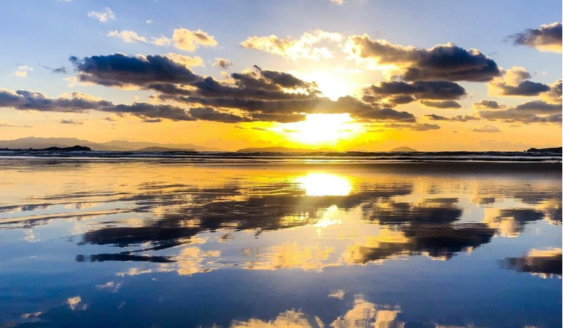 ชายหาดชิชิบุกาฮามะเป็นชายหาดทรายยาวประมาณ 1 กิโลเมตร ที่กลายเป็นที่รู้จักโด่งดังอย่างรวดเร็วจากปรากฏการณ์ “ภาพสะท้อนน้ำ” บนผืนทรายที่ที่แสนงดงาม โดยเฉพาะเมื่อถึงช่วงเวลาน้ำลง จะมีแอ่งน้ำตื้น ๆ หลงเหลืออยู่บนผืนทราย และเมื่อผิวน้ำนิ่งสงบ แอ่งน้ำเหล่านี้จะทำหน้าที่เหมือนกระจกเงาที่สะท้อนภาพท้องฟ้า ก้อนเมฆ และผู้คนได้อย่างชัดเจน ที่ชายหาดแห่งนี้ได้รับการจัดอันดับให้เป็นหนึ่งใน “จุดชมพระอาทิตย์ตกที่สวยที่สุดในญี่ปุ่น” โดยเฉพาะอย่างยิ่งในช่วงเวลาที่พระอาทิตย์กำลังจะลับขอบฟ้า ผืนน้ำที่สะท้อนท้องฟ้าจะสร้างภาพที่สวยงามออกมาให้รับชม