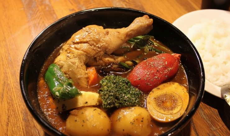 ซุปแกงกะหรี่เป็นหนึ่งในอาหารประจำท้องถิ่นของซัปโปโร ซึ่งต่างจากแกงกะหรี่ญี่ปุ่นทั่วไปที่ข้นหนืด ซุปแกงกะหรี่จะเป็นซุปที่อุดมไปด้วยเครื่องเทศ มีรสชาติจัดจ้าน มีความเผ็ดร้อนเล็กน้อย และเสิร์ฟในชามขนาดใหญ่พร้อมข้าวสวย เมนูนี้จะเน้นการใช้วุตถุดิบ เช่น มันฝรั่ง แครอท มะเขือยาว และพริกหยวก พร้อมเนื้อสัตว์ชิ้นใหญ่ โดยจะให้ลูกค้าสามารถเลือกระดับความเผ็ดและเครื่องเคียงได้ตามใจชอบ