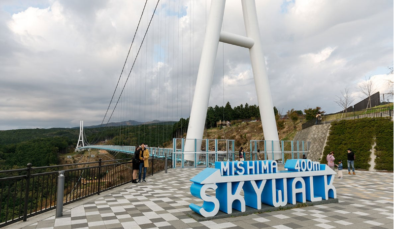สะพานแขวนมิชิมะเป็นสะพานที่มีความยาว 400 เมตร สามารถมองเห็นวิวแบบพาโนรามาที่ครอบคลุมไปถึงภูเขาไฟฟูจิ อ่าวสึรุกะที่กว้างใหญ่ และเทือกเขาของคาบสมุทรอิสุได้ ที่นี่เหมาะเป็นอย่างยิ่งสำหรับผู้ที่อยากมาชมวิวของภูเขาไฟฟูจิ เพราะจะได้เห็นภูเขาไฟฟูจิอันยิ่งใหญ่ตั้งอยู่เป็นฉากหลังของสะพาน โดยเฉพาะในฤดูหนาวที่ยอดเขามีหิมะปกคลุม
