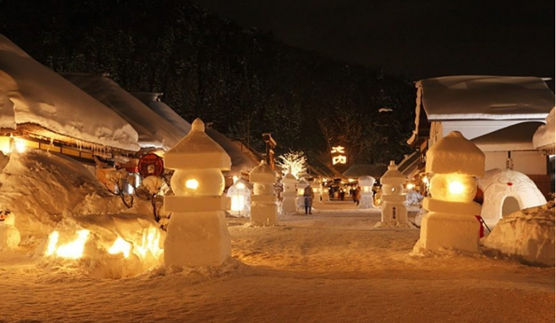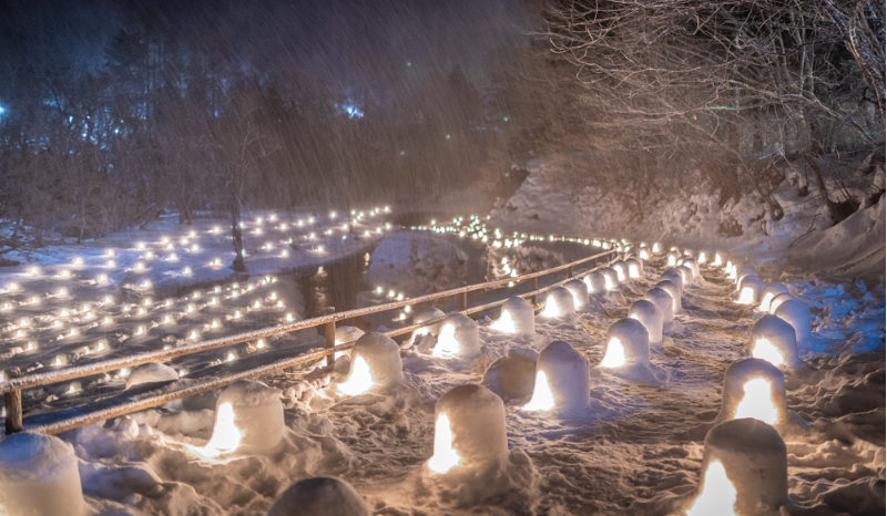 ที่ยูนิชิกาวะออนเซ็นเป็นเมืองน้ำพุร้อนที่ตั้งอยู่ในหุบเขาของนิกโก้ จังหวัดโทจิงิ ในช่วงฤดูหนาว ที่นี่จะกลายเป็นอาณาจักรน้ำแข็งและหิมะที่สว่างไสวด้วยแสงเทียนอันสวยงาม ซึ่งเป็นที่รู้จักกันในชื่อ “เทศกาลคามาคุระ” และยังได้รับเลือกให้เป็นมรดกทิวทัศน์ยามค่ำคืนของญี่ปุ่นอีกด้วย โดยเทศกาลนี้จะมีกระโจมหิมะขนาดเล็กอยู่หลายหลัง เรียงรายอยู่ตามแนวแม่น้ำและทางเดิน เมื่อถึงยามค่ำคืน เทียนไขที่อยู่ในกระโจมจะถูกจุดส่องสว่างขึ้น สร้างเป็นทางเดินแห่งแสงที่ทอดยาวออกไป ให้บรรยากาศที่อบอุ่นและโรแมนติกเป็นอย่างยิ่ง เทศกาลนี้มักจัดขึ้นเป็นระยะเวลานานกว่าเทศกาลอื่น ๆ โดยจะจัดในช่วงปลายเดือนมกราคมไปจนถึงปลายเดือนกุมภาพันธ์