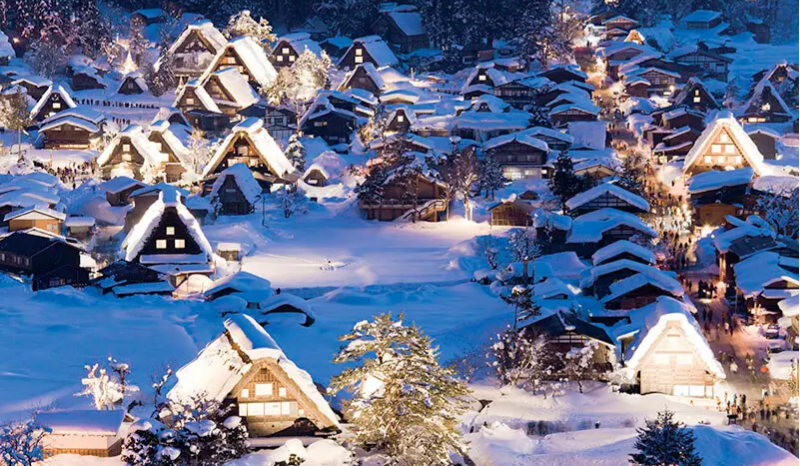 หมู่บ้านชิราคาวะโกเป็นหมู่บ้านที่ได้รับการขึ้นทะเบียนเป็นมรดกโลกโดย UNESCO และถูกยกย่องให้เป็นหนึ่งในภาพทิวทัศน์ดั้งเดิมที่สวยที่สุดของญี่ปุ่น ที่หมู่บ้านนี้จะประกอบด้วยบ้านเรือนสไตล์ กัสโชซึคุริ หรือบ้านทรงพนมมือกว่า 100 หลัง สามารถทนทานต่อหิมะที่ตกหนักในฤดูหนาวได้ ในช่วงฤดูหนาว ที่หมู่บ้านนี้จะถูกยกให้เป็นช่วงเวลาที่สวยงามที่สุด เหล่านักท่องเที่ยวจะได้รับชมทิวทัศน์ที่ได้เห็นจากจุดชมวิวและสร้างเป็นความน่าประทับใจได้ดีเยี่ยม ส่วนการจัดงานประดับไฟยามค่ำคืนในฤดูหนาวของชิราคาวาโกนั้นมีชื่อเสียงโด่งดังไปทั่วโลก แสงไฟจากหน้าต่างบ้านเรือนส่องสว่างออกมาตัดกับผืนหิมะ ทำให้บ้านแต่ละหลังดูโดดเด่นและนุ่มนวล